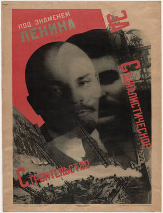 “Under the Banner of Lenin - Socialist Construction” is a photomontage poster created by Gustav Klutsis in 1930. It is an artifact of the Soviet propaganda campaign to shift the mindset of every Russian citizen through art. Klutsis’s posters are particularly useful means of propagandizing, due to their succinct slogans and images. By 1931, Klutsis’s posters were published in large quantities by Izogiz, the publishing house under central government control. They reached a wide audience domestically and attracted international attention. More recently, Klutsis’s propaganda has been featured in museum collections abroad.