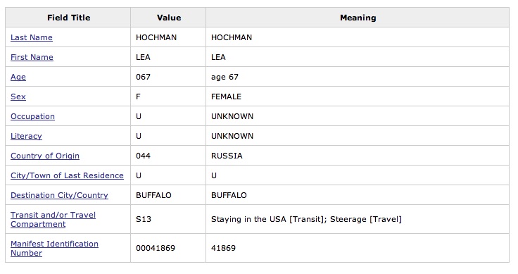 1) From Haven to Home: 350 Years of Jewish Life in America: A Century of Immigration, 1820-1924." Library of Congress. Library of Congress, n.d. Web. 27 Apr. 2014. 2) "Pale of Settlement." The YIVO Encyclopedia of Jews in Eastern Europe. YIVO Institute for Jewish Research, 2010. Web. 27 Apr. 2014. 3) "Hochman, Lea." The National Archives. U.S. National Archives and Records Administration, n.d. Web. 27 Apr. 2014. 4) "City of Rome (ship)." The National Archives. U.S. National Archives and Records Administration, n.d. Web. 27 Apr. 2014.