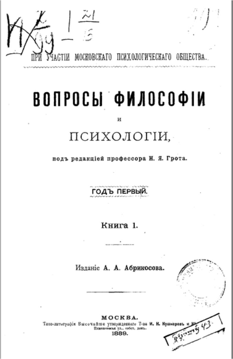 Published between 1889 and 1918 and founded by the second Chairman of the Moscow Psychological Society and Professor and Philosophy, Nikolai Grotto, “Questions of Philosophy and Psychology” is one of the most important social and psychological publications of its time. As the beginning of a set of items on this page that reflect upon the meaning and context of a selection of the Russian Psychological Society (or the equivalent)’s publications over time, “Questions of Philosophy and Psychology” encompasses unique issues, observations, and academic inquiries regarding a broad scope of issues. Overall, this publication is particularly important because of what it represents in thinking about psychology and the evolution of the Russian Psychological Society in a global and historical context – namely, the fact that psychology, philosophy, and intricate socio-political development are always interconnected.