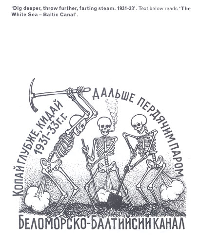 While Soviet authorities portrayed the building of the Belomor Canal as a rehabilitative process, those actually involved remembered their time less fondly. These sentiments can be seen in this tattoo, found on the body of an elderly man, who commemorated his time there with an image of skeletons working with picks, with a pledge to “dig deeper, throw further, farting steam.” This rather humorous tattoo highlights some serious issues – the Russian government substituted a paid labor force aided by machinery for slave labor using primitive tools, but nevertheless expected the project to be done at an inhuman pace. The project’s poor tools and inadequate working conditions combined with a culture where speed was prioritized and where humans were regarded as expendable and replaceable to create a human rights disaster where tens of thousands of lives were lost.